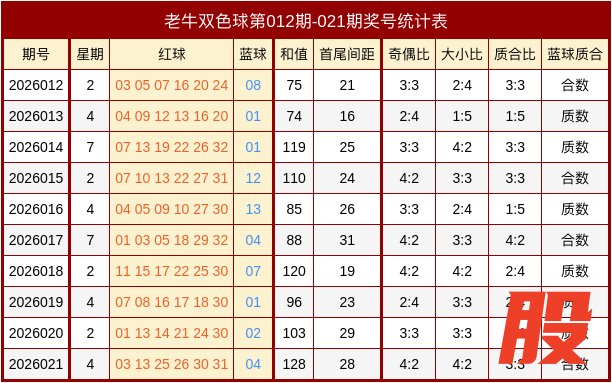 老牛最近10期红球奖号走势分析